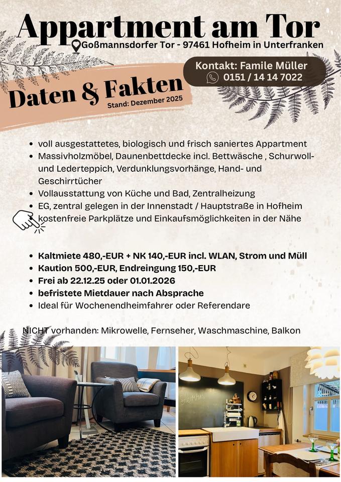 Sie befinden sich hier: Appartment voll möbliert in Hofheim i.Ufr. ab sofort frei in Königsberg in Bayern - 3270997100-199-6847 | 1A-Immobilienmarkt.de