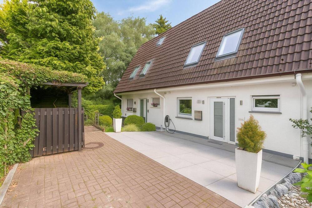 Sie befinden sich hier: Am Ende der Straße steht ein Haus am See. Wohnen am Wasser - Modernes Traumhaus mit Seeblick in Hilden - 25NTFZIEFQQJ | 1A-Immobilienmarkt.de