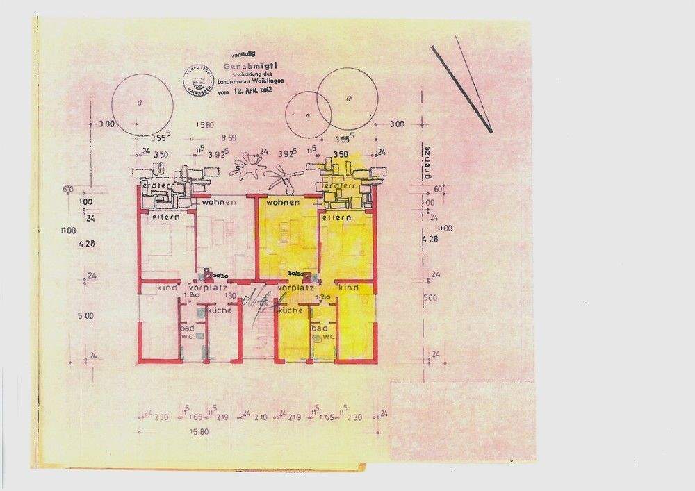 • Grundriss Wohn. Nr. 3 gelb und Nr. 2 -