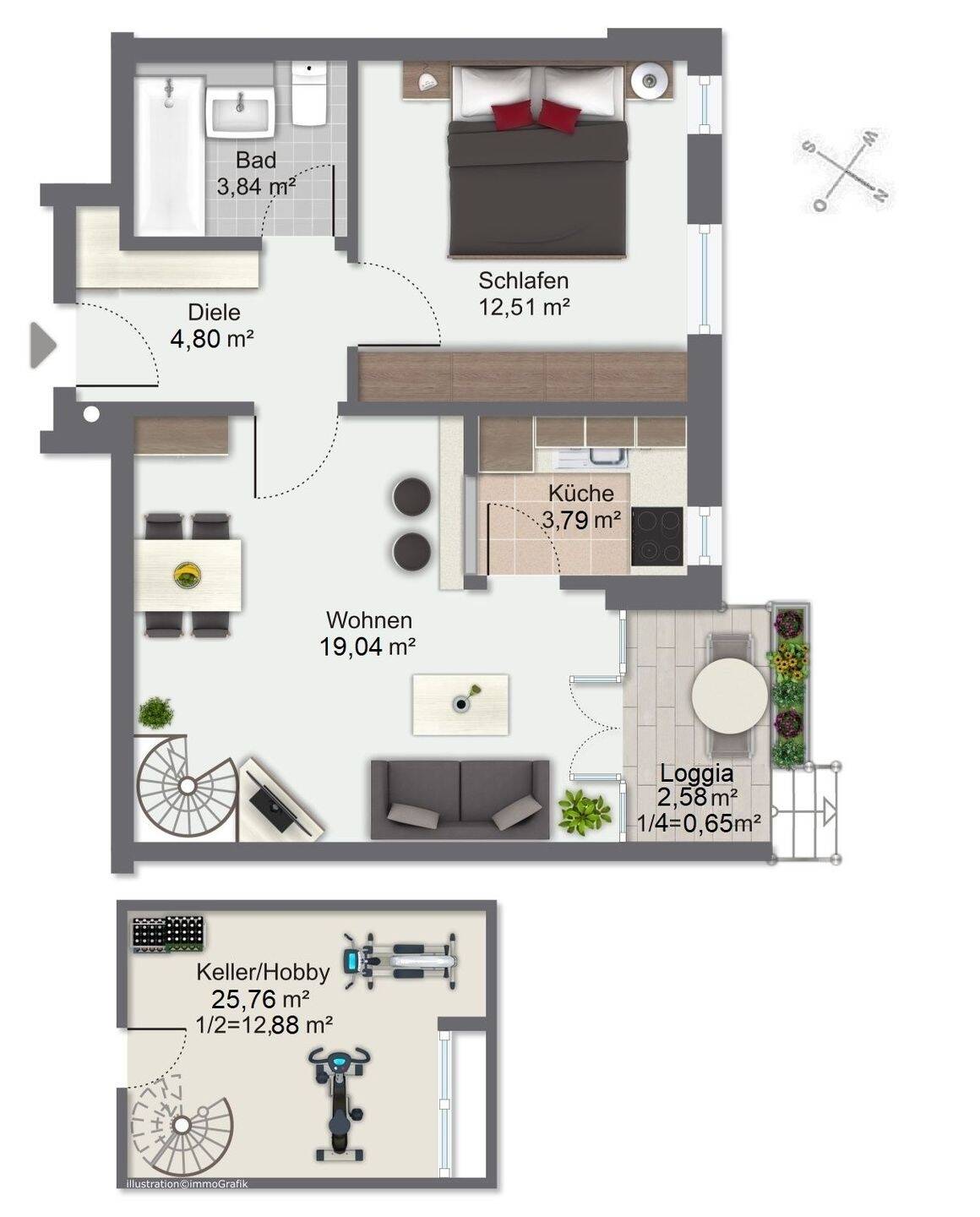 Wohnfläche:ca. 57,50 m²