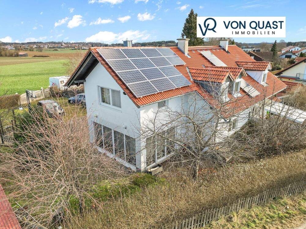 Süd-Westansicht mit Fotovoltaik - Besondere DHH, zwischen Ammersee und Landsberg, großer Garten