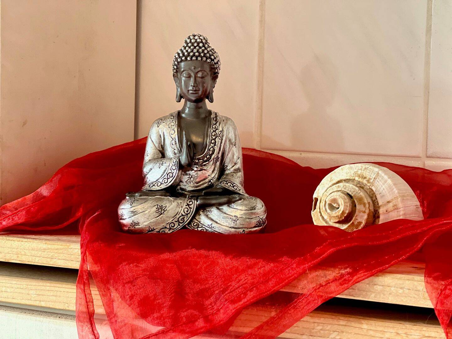 • Sitzecke mit Quellstein und Gartenhütte -