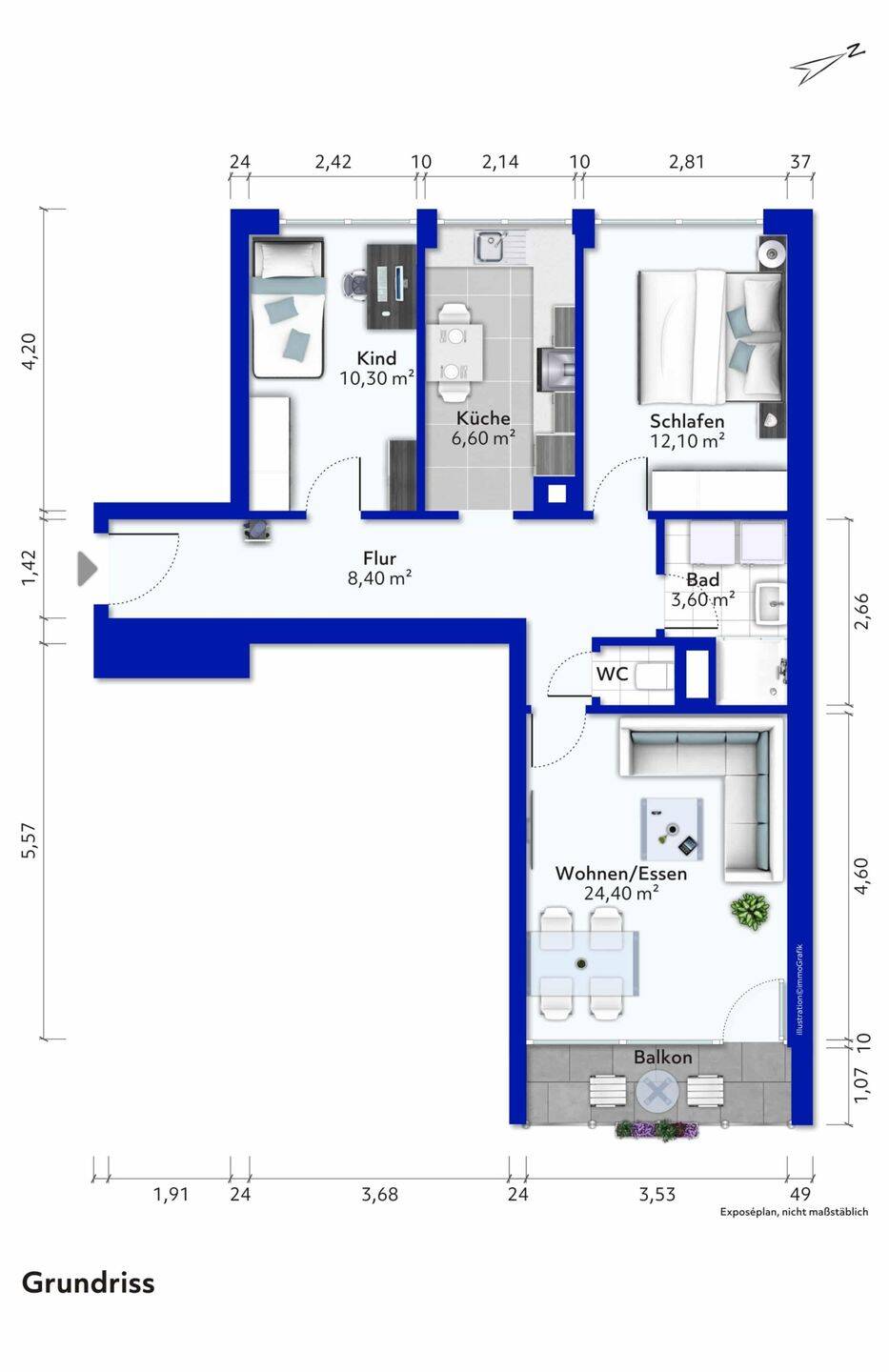 Wohnfläche:ca. 68,50 m²