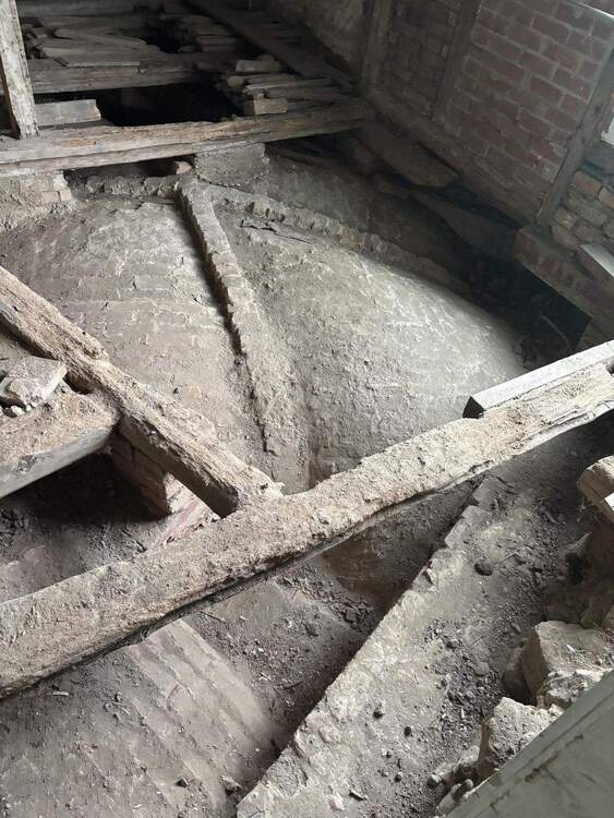 • Gewölbe freigelegt mit Blick zum Keller -