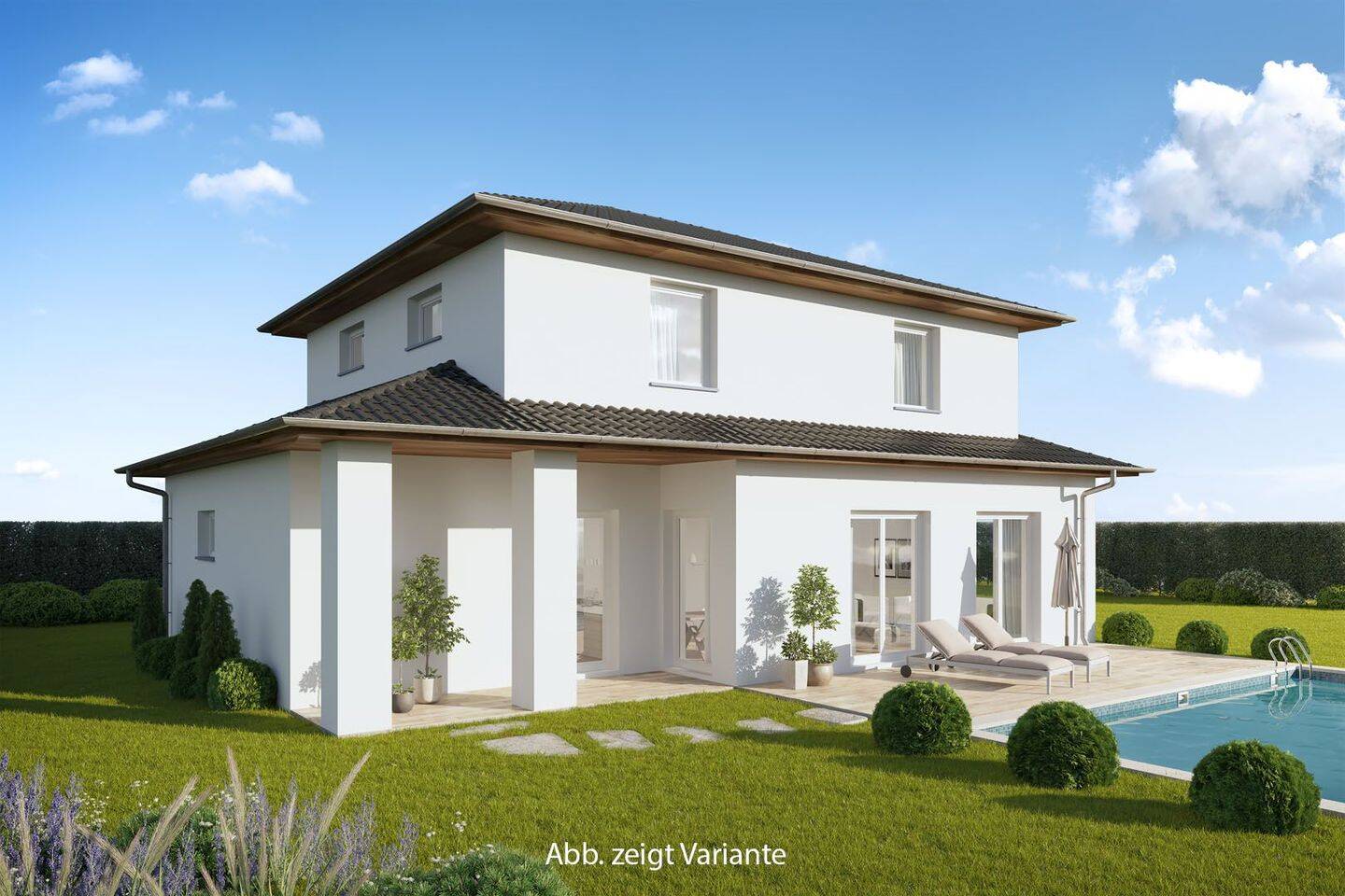 EFH Typ Lindau (Stadtvilla Ambiente, Effizenzhaus 55), geplanter Neubau, Bauzeit ca. 12 Monate, besonderes Urlaubsfeeling durch mediterrane solide Bauweise (Ziegel), 2-geschossig, geräumige Stadtvilla in Verbindung mit einem kubischen Hausaufbau, besonderen Akzenten des Walmdaches, schöner Blickfang, interessante Aufteilung des Hauses, großzügiger offener moderner Wohn-u. Essbereich, angrenzende überdachte Terrasse, Küche mit praktischen Vorratsraum, zusätzlichem AZ, 1 kleines Gäste Bad, Obergeschoss bestehend aus 1 SZ, 2 KiZi , 1 AZ, 1 geräumiges Wohlfühlbad, gehobene Ausstattung z.B. Fenster Kunststoff mit Rollläden, Dreifachverglasung, 2 farbig, Wärmepumpe, Sanitärbereiche Ausstattung z.B. Keramik, Fliesen, Fußböden Fliesen u. Vinylböden, ebenerdige Duschen, Haustüre Typ Manufakta, Außenputz 2-farbig usw.