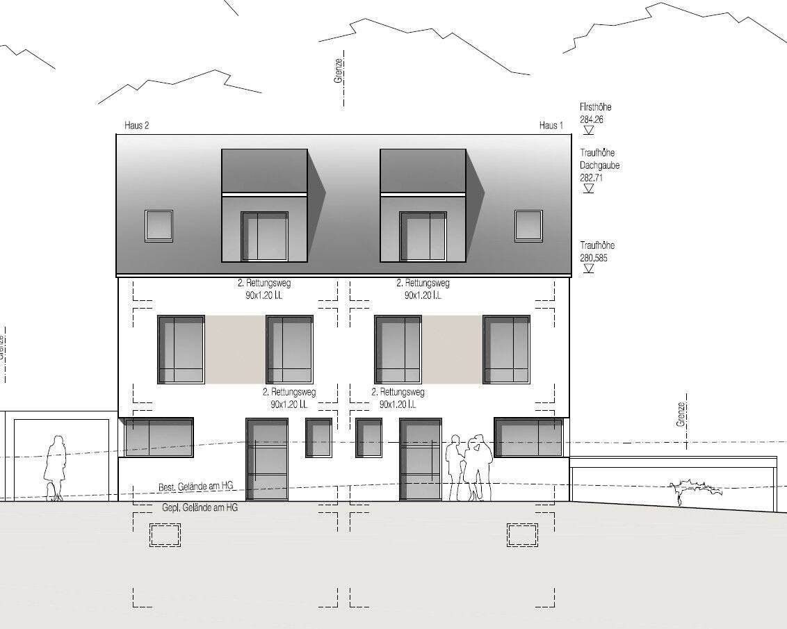 Unverb Illustration Südseite - Sonnige Doppelhaushälften in Unterensingen - Neubau-Traum mit Südausrichtung!