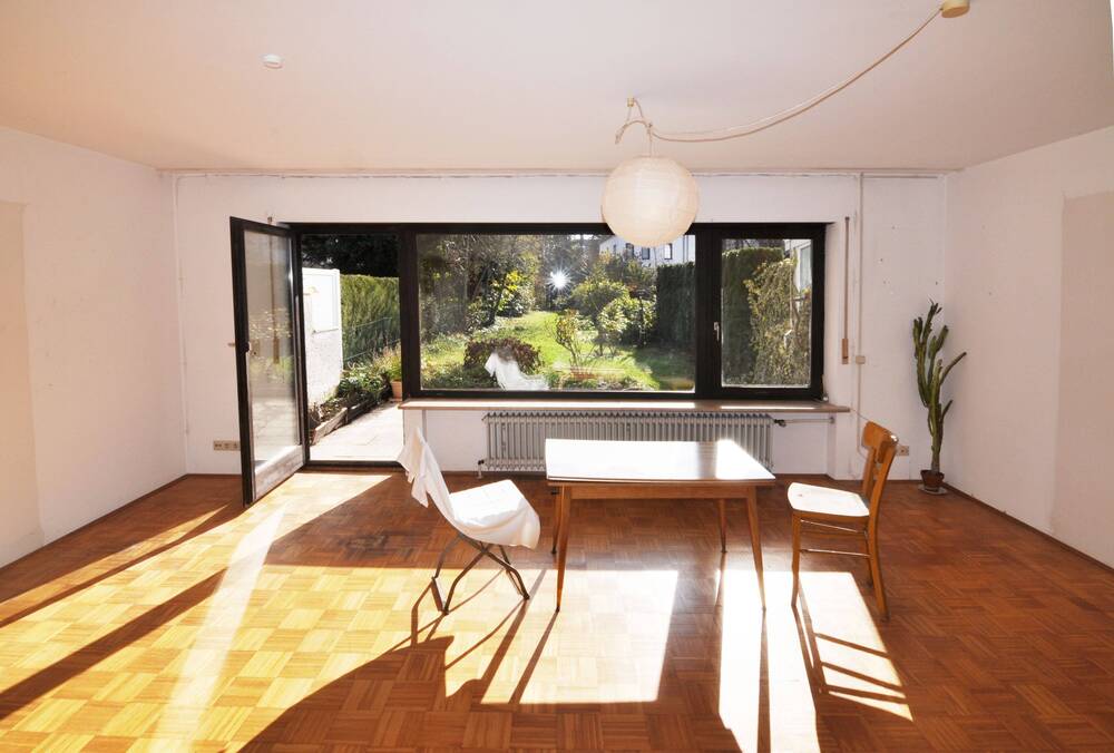 • Blick Wohnzimmer - RMH mit viel Wohn-Nutzfläche (Ausbaureserve!) und großem, sonnigen Südgarten