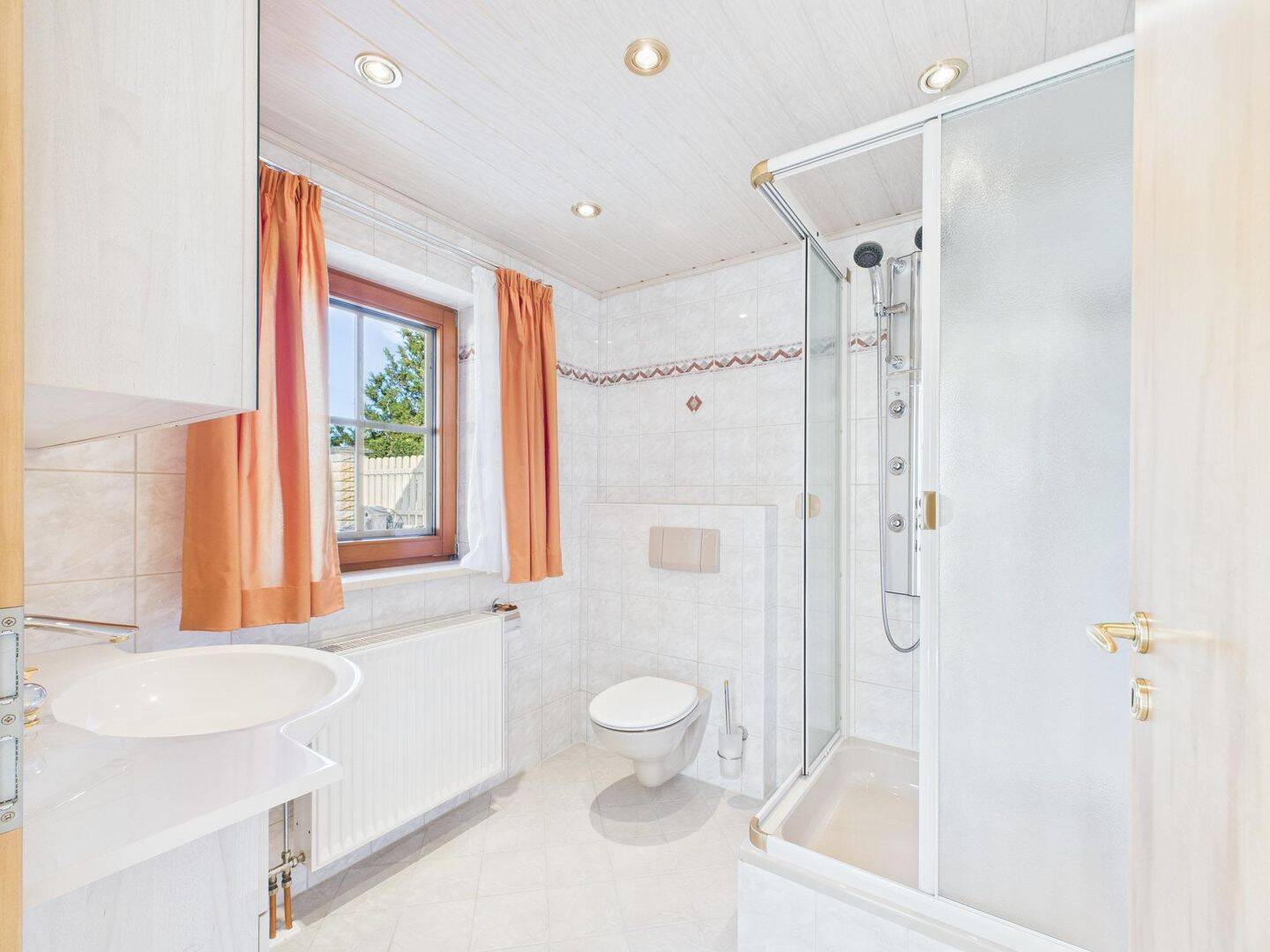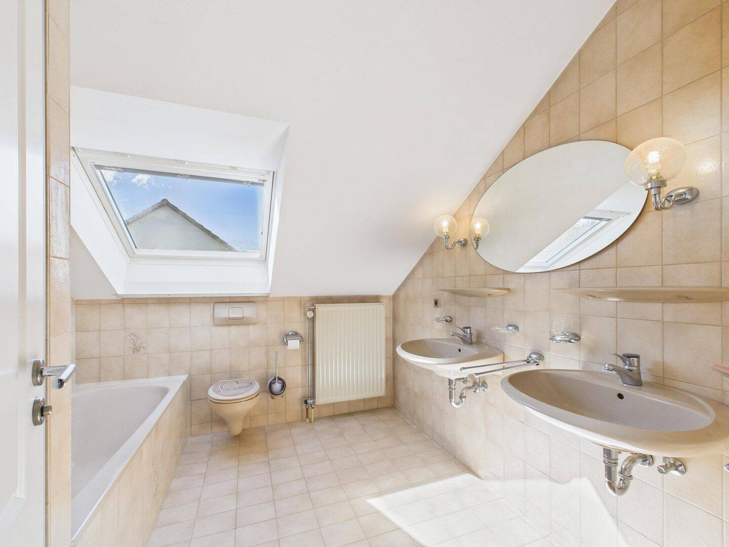 • Badewanne und sep. Dusche unter dem Dach, gut belichtet und harmonisch in die Dachschräge integriert -