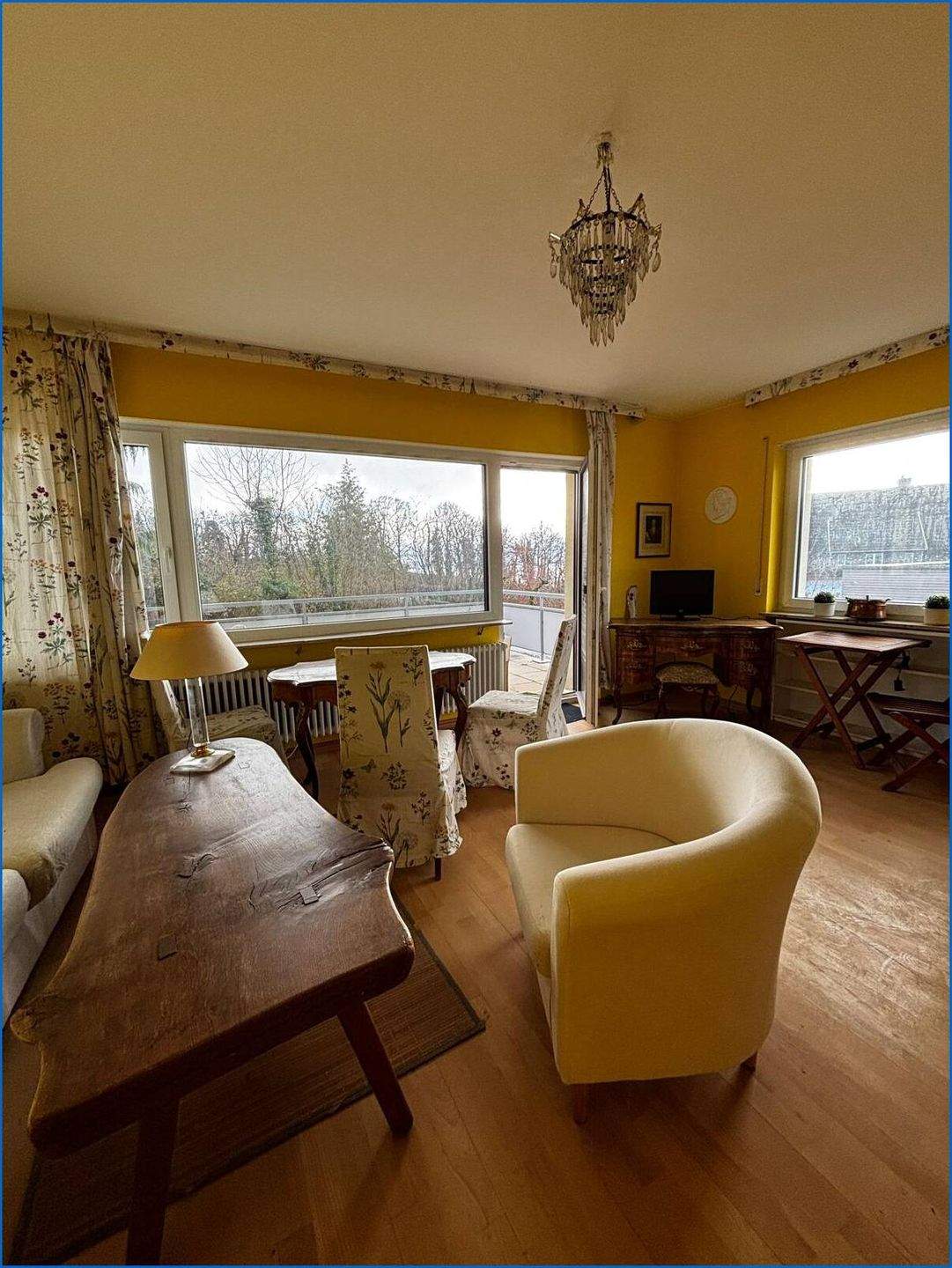 • Blick ins Wohnzimmer von Balkon -