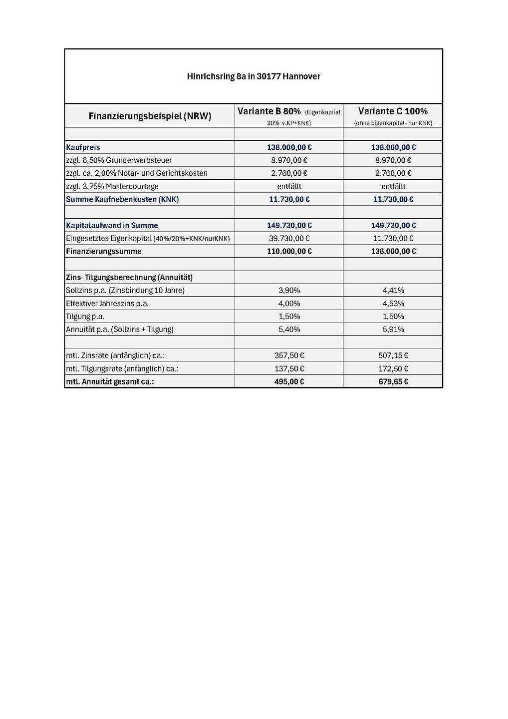 Kaufpreis: 138.000 EUR