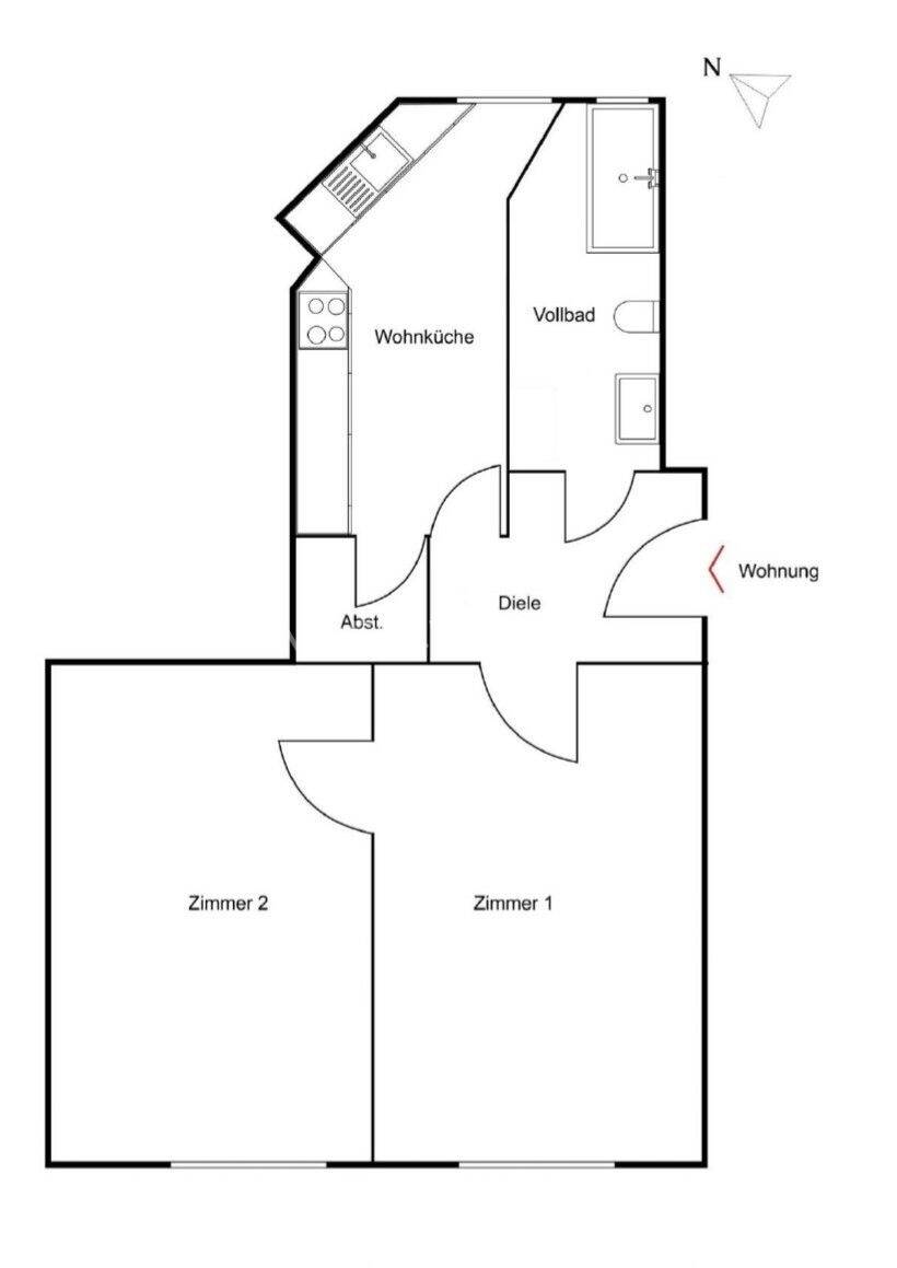 Badezimmer - 2 Zimmer Etagenwohnung zum Kaufen in Hamburg