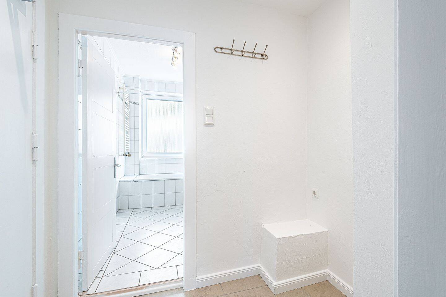 • Eingangsflur Blick Badezimmer - 2 Zimmer Etagenwohnung in Hamburg