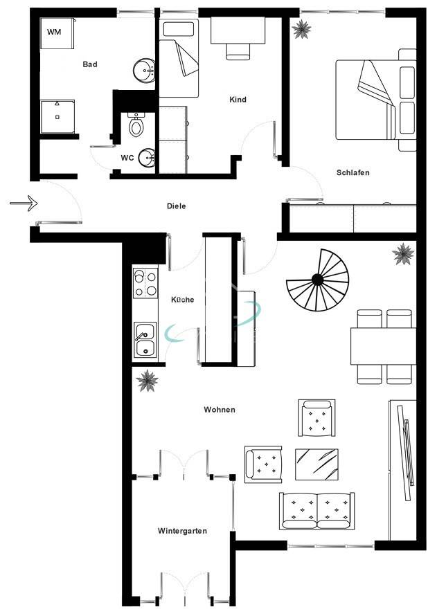 Familienfreundliche 4-Zimmer-Wohnung mit Wintergarten und Duplex-Stellplatz