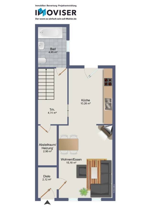 • Wohn-/Esszimmer - 3 Zimmer Reihenmittelhaus zum Kaufen in Grevenbroich
