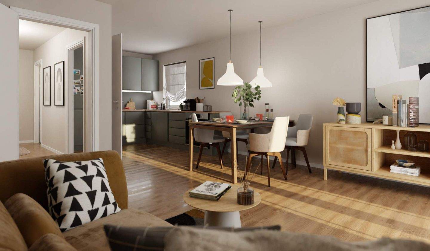 • Die offene Wohnküche lädt zum gemeinsamen Kochen ein -
