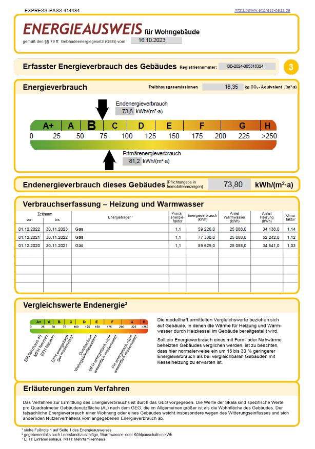 Energieverbrauchkennwert:73,8 kWh/(m²·a) kWh/(m²·a)