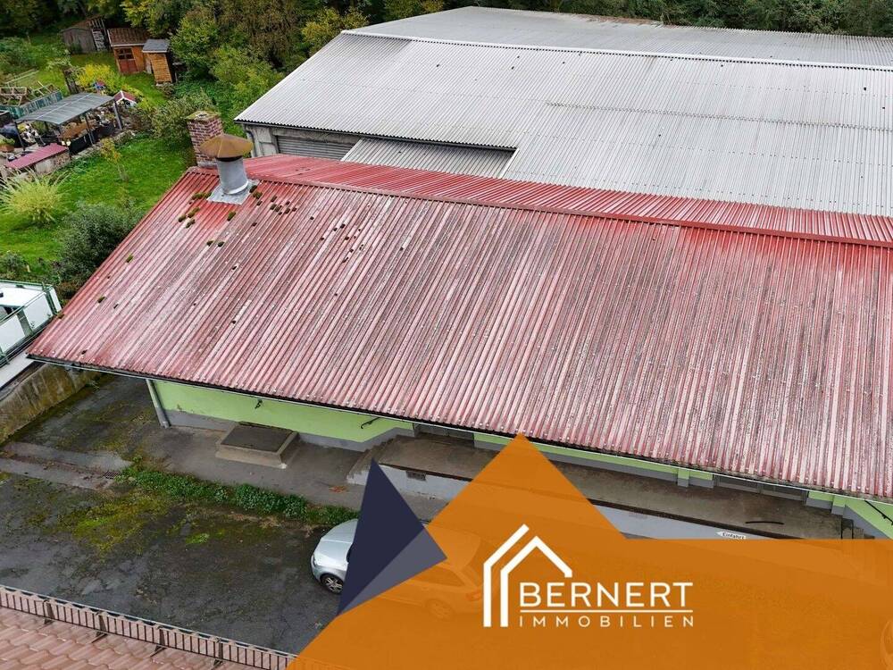 • Luftbild Lagerhalle+Bürogebäude 1 - 2 zusammenhängende Lagerhallen bei Sonnefeld zum Schnäppchenpreis