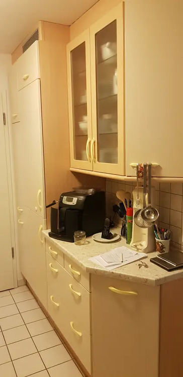 Wohnzimmer: hochwertige Hifi-Anlage, DVD, Kabel-TV, Schlafsofa, elegante Schrankwand, Küche mit Eßzimmer: Mikrowelle, Backofen, Kühlschrank, Gefrierschrank, exklusive Kaffemaschine, Wasserkocher, vollständiges weißes Rosenthalporzellan, Edelstahlbesteck, Eßecke /-tisch mit 4 Stühlen Bad: Badewanne mit Handbrause, 2 elektrische Zahnbürsten, Badeartikel, Bade- und Handtücher etc. Schlafzimmer: hochwertiges Doppelbett, Bettwäsche, großzügige Schrankwand mit viel Platz, Arbeitszimmer / Gästezimmer (mit separatem Eingang): Schreibtisch, Rollsessel, PC, Drucker, WLAN=Fritzbox mit Repeater, Aktenschränke, Fitnessraum: Sauna, Sportgerät Waschmaschine, Trockner Gästedusche und WC, Gemütlicher Garten ca. 80m² exklusiver Parkettboden Voll Möbliert mit allen Gebrauchsgegenständen und Wäsche.. angenehme Nachbarn!