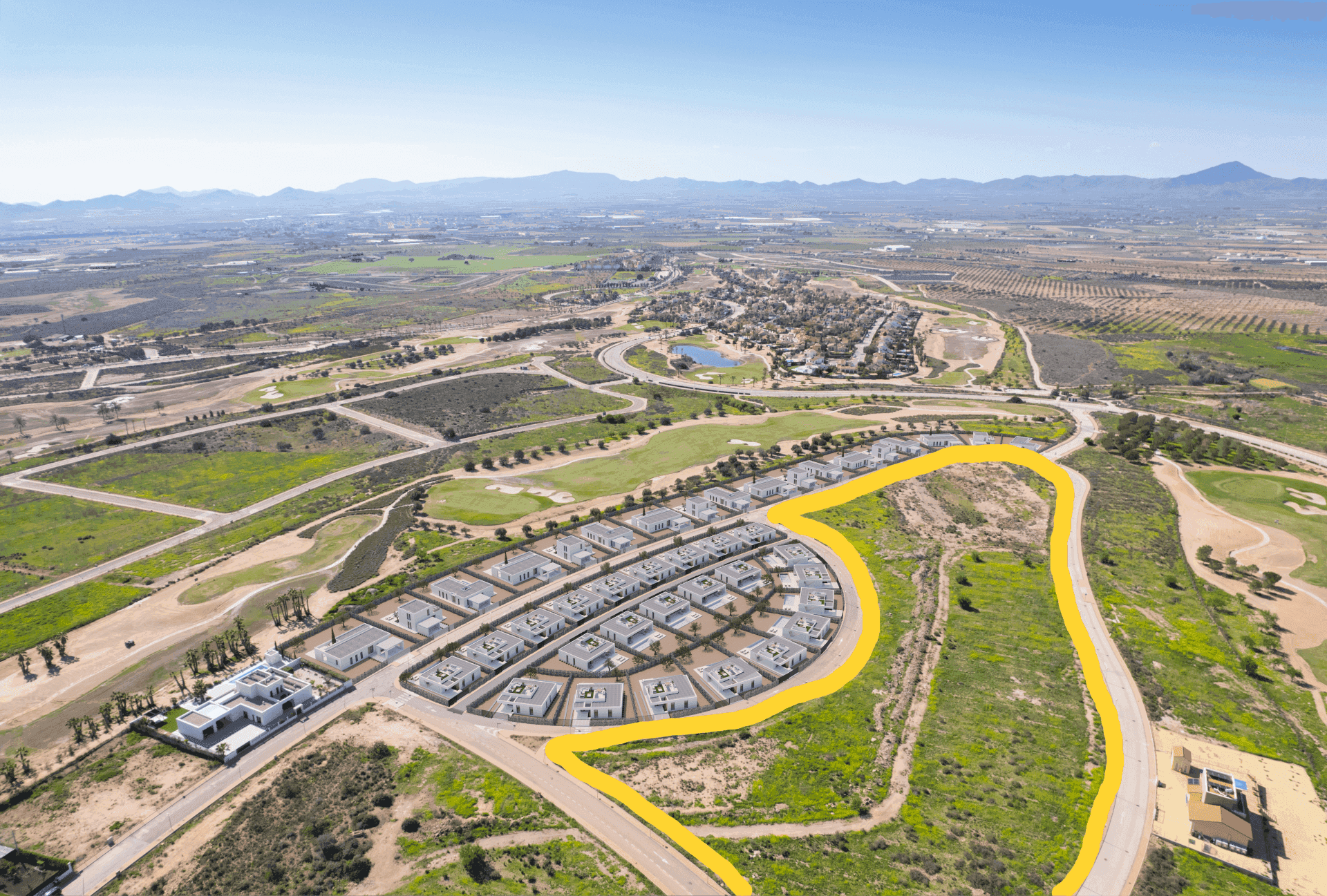 Die Omala Residences im Hacienda del Alamo Golf Resort sind eine großartige Ergänzung unseres Immobilienangebots in diesem exklusiven und lebhaften Resort in Murcia.39 freistehende Villen auf sehr großzügigen, landschaftlich gestalteten Grundstücken mit privatem Swimmingpool.Kein anderes Projekt für freistehende Villen an der Costa Cálida bietet so große Grundstücke und eine so umfassende Qualitätsausstattung zu diesem Preisniveau.Villa Melissa: 335.300 € - 353.200 €Melissa 28: Grundstück 516, 41 qm, Veranda 30, 52 qm, Solarium 38, 75 qm, privater Swimmingpool 3x7, 8, Süd-West-AusrichtungDie Villa bietet ein auffallend modernes mediterranes Design und besteht aus drei Schlafzimmern, zwei Bädern und einem sehr großen Solarium mit beeindruckendem Blick auf die Berge im Hintergrund.Die Villa misst 111 Quadratmeter Bauvolumen und ein Solarium von 39 Quadratmetern- Grundstücksgrößen reichen von 395 bis 1.023 Quadratmetern.Die Villa ist komplett im Erdgeschoss angelegt. Durch die Eingangstür gelangt man direkt in das sehr großzügige Wohn- und Esszimmer. Der Wohnbereich hat über die gesamte Länge raumhohe Fenster, die einen sehr attraktiven und hellen Raum schaffen.die Küche verfügt über eine kombinierte Bar und eine Kochinsel, perfekt für Gäste. Das Hauptschlafzimmer verfügt über ein eigenes Bad mit begehbarer Dusche, alle Schlafzimmer haben große Einbauschränke und der Außenbereich bietet reichlich Platz, um den mediterranen Lebensstil zu genießen: Eine überdachte Veranda, die willkommenen Schatten spendet, ein übergroßer Garten, der mit einheimischen Bäumen wie Oliven, Granatäpfeln oder Zitrusfrüchten sowie Jasmin und aromatischen Pflanzen bepflanzt ist. Der Garten ist an eine automatische Bewässerungsanlage angeschlossen.Ausstattung:Freistehende Villa mit drei Schlafzimmern und zwei BädernMöblierte und voll ausgestattete KücheVorinstallation für KlimaanlageGartenanlageHauptschlafzimmer mit eigenem BadAbstellraumAuffahrtAerothermische WarmwasserversorgungZahlungsstruktur:Reservierungsanzahlung 4.900 €Baugenehmigung 20 %, abzüglich der Anzahlung90 Tage nach der Genehmigung 15 %180 Tage nach der Genehmigung 15 %Fertigstellung 50 %Hacienda del Álamo Golf Resort ist zweifelsohne das prestigeträchtigste Golfresort an der Costa Cálida. Das sanft hügelige Gelände am Fuße der Sierra de Carrascoy bietet hervorragende Panoramen und Ausblicke. Die Anlage liegt in der Nähe der Städte Murcia und Cartagena und bietet eine fantastische Auswahl an Stränden, nur zwei Minuten von der typischen Murcia-Stadt Fuente Álamo entfernt. Die Stadt bietet alles, was man braucht: von einem 24-Stunden-Ärztezentrum über Supermärkte und Fachgeschäfte bis hin zu Restaurants und Bars - alles, um den perfekten mediterranen Lebensstil zu genießen.Das Hacienda del Álamo Golf Resort beherbergt den größten Golfplatz der Costa Cálida, eine hervorragende Golfakademie und einen Sportclub. Für die kulinarische Unterhaltung gibt es mehrere Restaurants und Bars, die das ganze Jahr über geöffnet sind... Suchen Sie nicht weiter, wenn Sie den perfekten Ort in Spanien finden möchten, Hacienda del Álamo Golf Resort ist einer der seltenen Orte, an denen Sie anfangen können, den Traum zu leben .....
