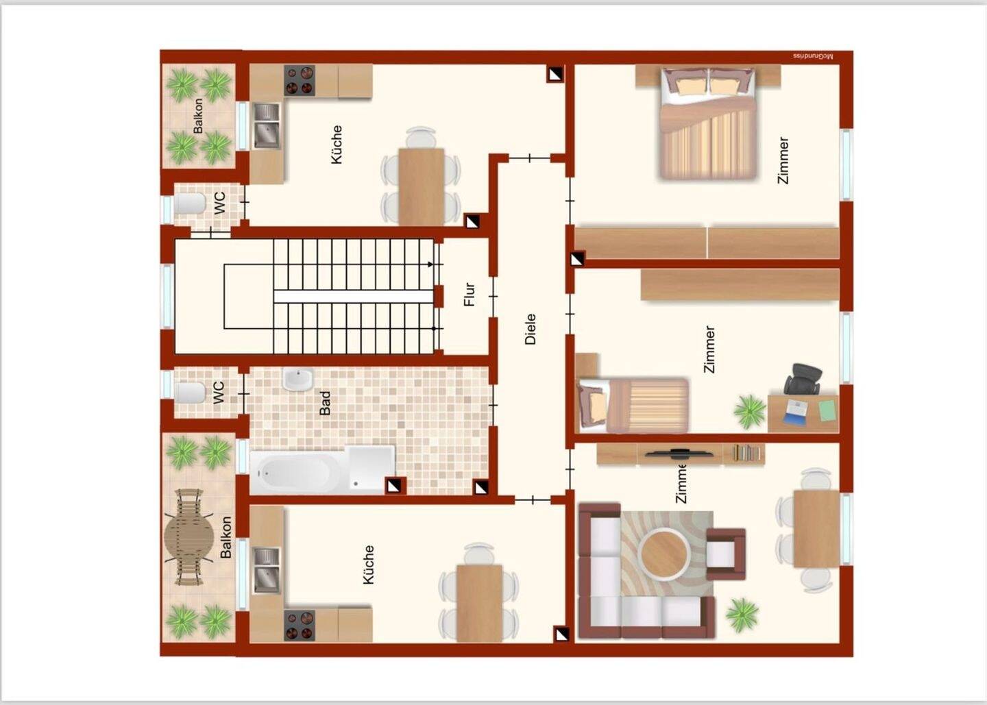 Schön geschnittene 4 Zimmer Wohnung mit 2 Balkonen in zentraler Lage