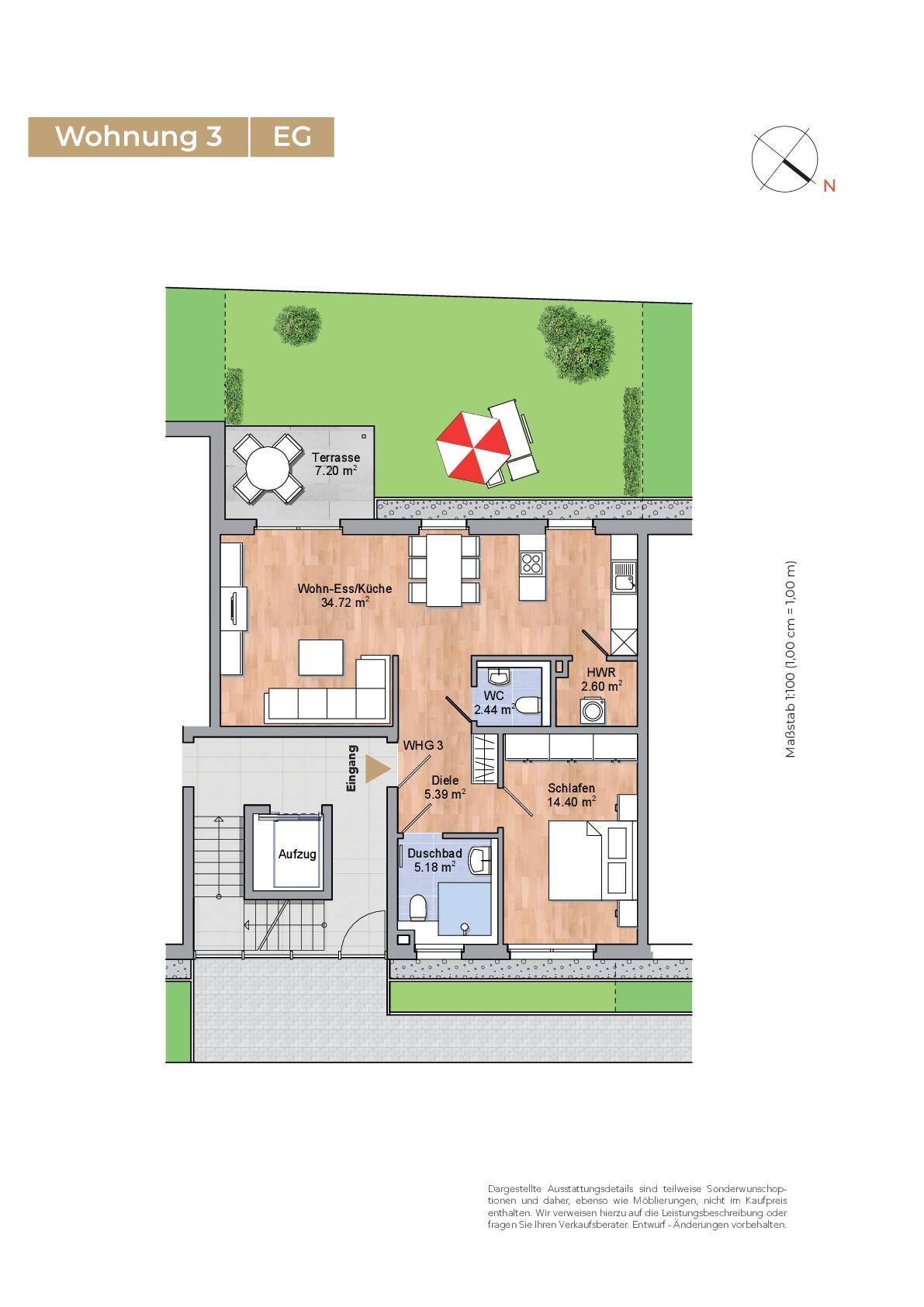 Grundriss WE3 (EG).jpg - Etagenwohnung mit 68,70 m² in Würselen zum Kaufen