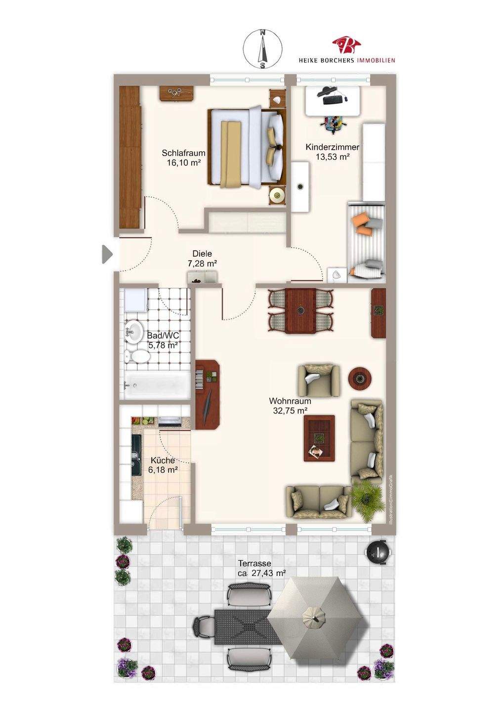 Sie befinden sich hier: ***Heike Borchers Immobilien***Freundliche Terrassenwohnung mit viel Tageslicht***1. Obergeschoss*** in Hohenbrunn - 253NFSHBRZBN | 1A-Immobilienmarkt.de