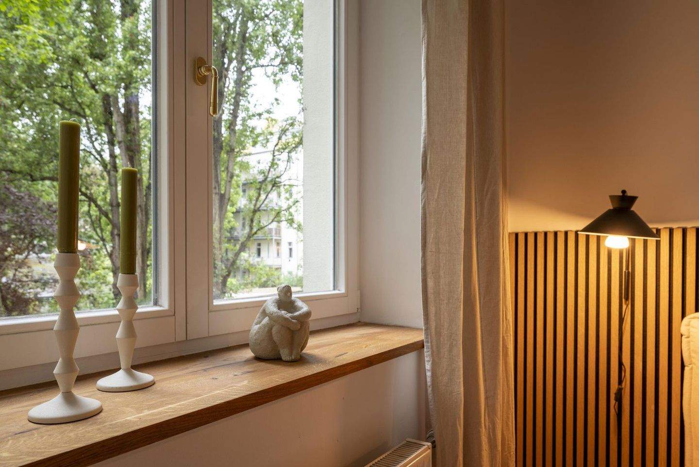 • Ruhiges Schlafzimmer - Möbliert und renovierte 65?m² Altbauwohnung mit Balkon + Badewanne im Simon-Dach-Kiez