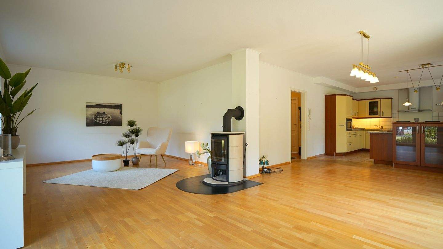 • Der helle Wohnbereich mit Kamin führt zum... - Einfamilienhaus mit 144,00 m² in Hoisdorf zum Kaufen