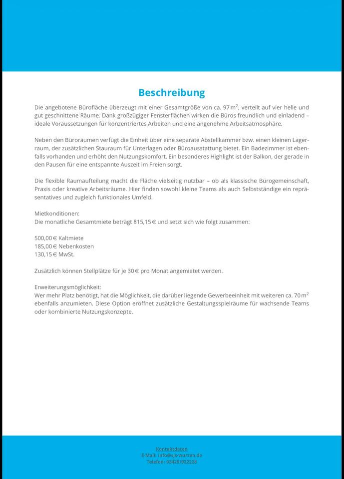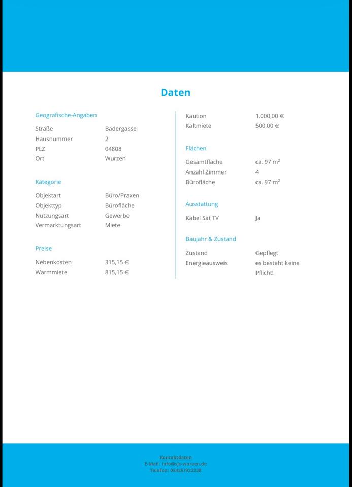 Sie befinden sich hier: Büroräume in Wurzen Büro Mietobjekt Kanzlei Praxis in Wurzen - 3271158896-277-3904 | 1A-Immobilienmarkt.de
