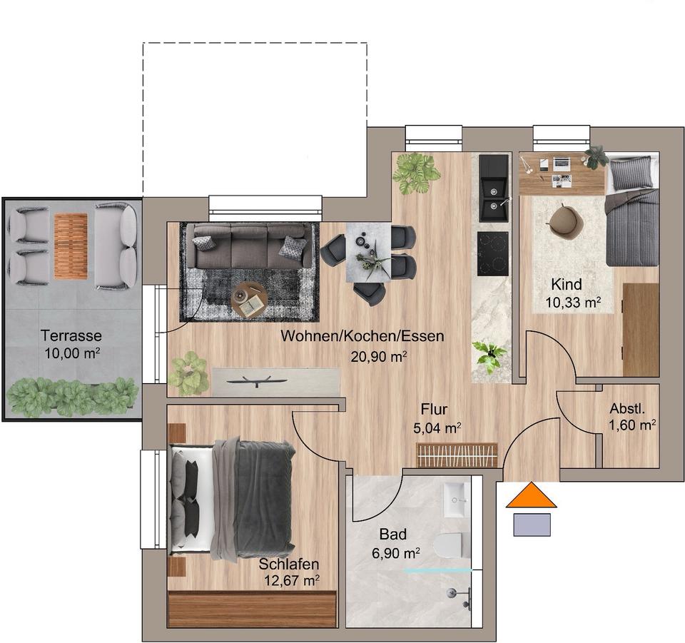 Wohung 61,25 qm - 235.000,00 EUR Kaufpreis, ca.  61,20 m²