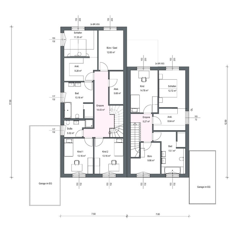 Vorgesehene Ausführung: – Flachdach mit Dachbegrünung (gemäß behördlicher Vorgaben) – Raumhöhe im Erdgeschoss ca. 2, 74 m in beiden Haushälften, im Obergeschoss übliche Raumhöhe