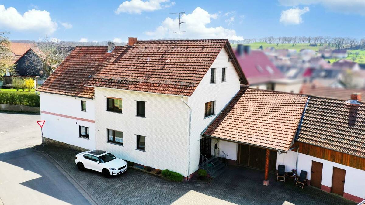 Sie befinden sich hier: Familienfreundliches 2-Familienhaus mit 3 Garagen, großer Halle und sonnigem Garten in Schlüchtern Hutten - 25IQG6SRVFSJ | 1A-Immobilienmarkt.de