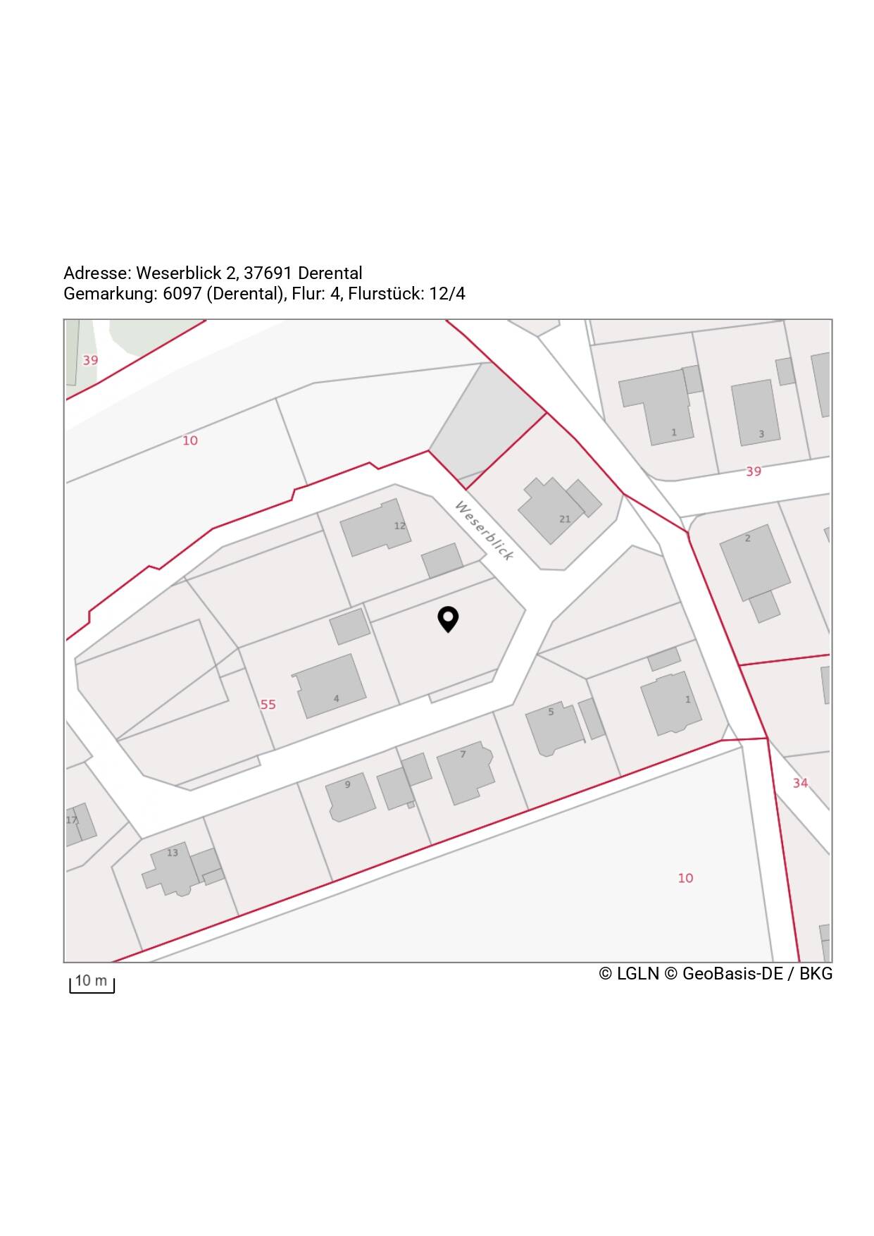 Lageplan, Weserblick 2, Derental -