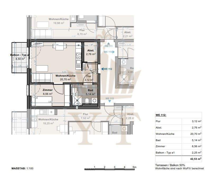Zimmeranzahl :2 Gesamtgröße :ca. 42,00 m² Wohnfläche :ca. 42,50 m² Baujahr :2023 Frei ab :Bezug: sofort Etage :2 Balkon :