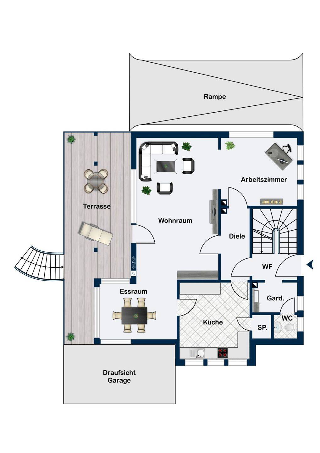 • Wohnzimmer Erdgeschoss illustriert -
