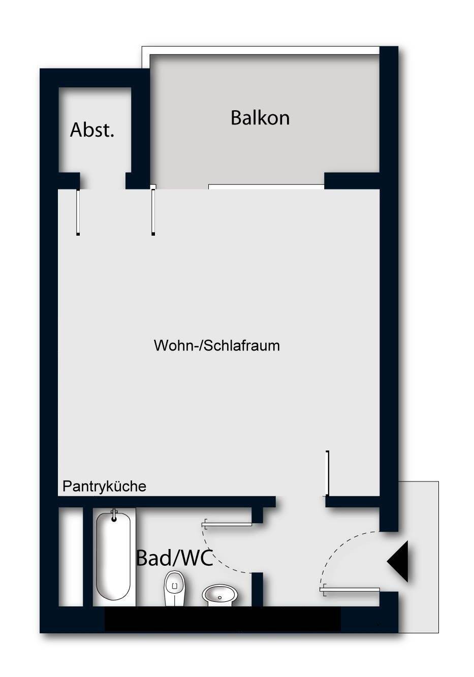 Grundriss - 1 Zimmer Etagenwohnung in Bonn
