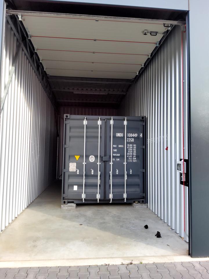 Foto - Großgarage mit Container, 400 Volt, XXL Garage, Gehwegsplatten