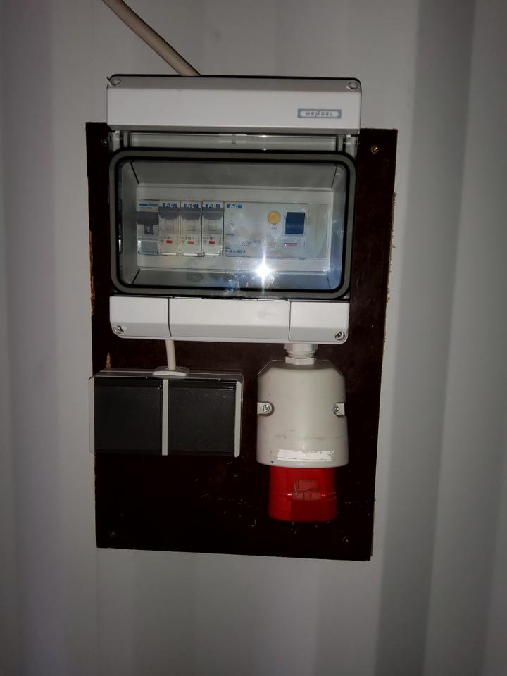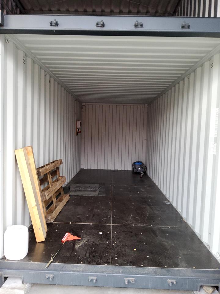 Großgarage mit Container, 400 Volt, XXL Garage, Gehwegsplatten