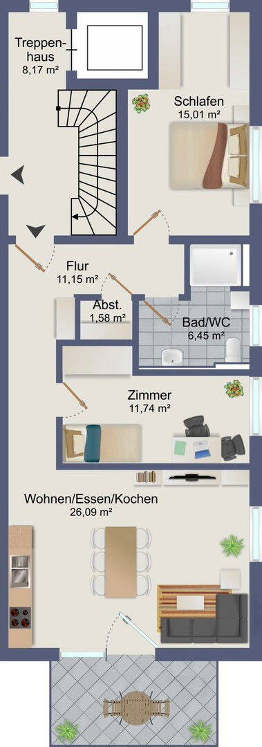 • Visualisierung Essen & Wohnen - 3 Zimmer Etagenwohnung zum Kaufen in Rottenburg