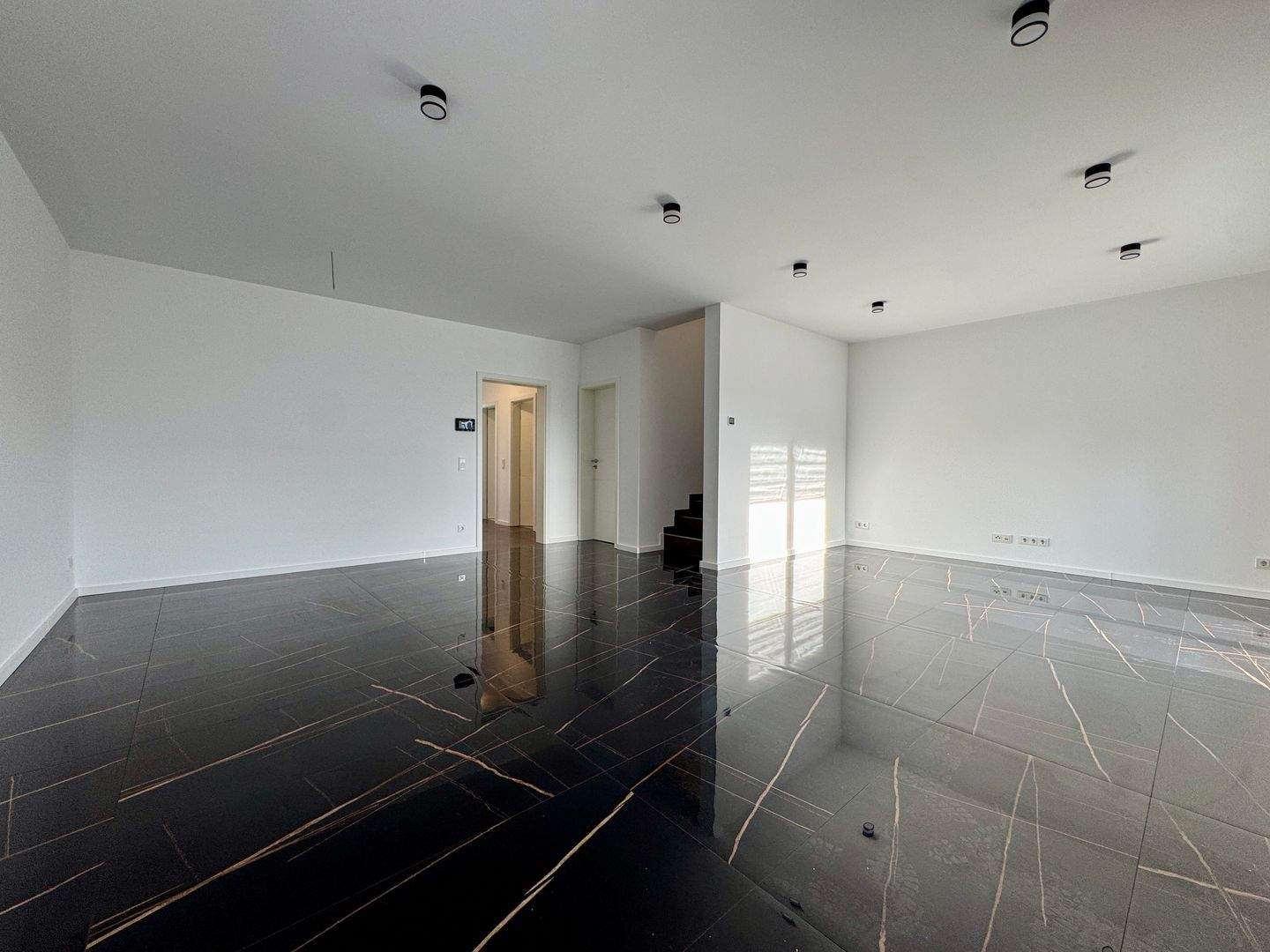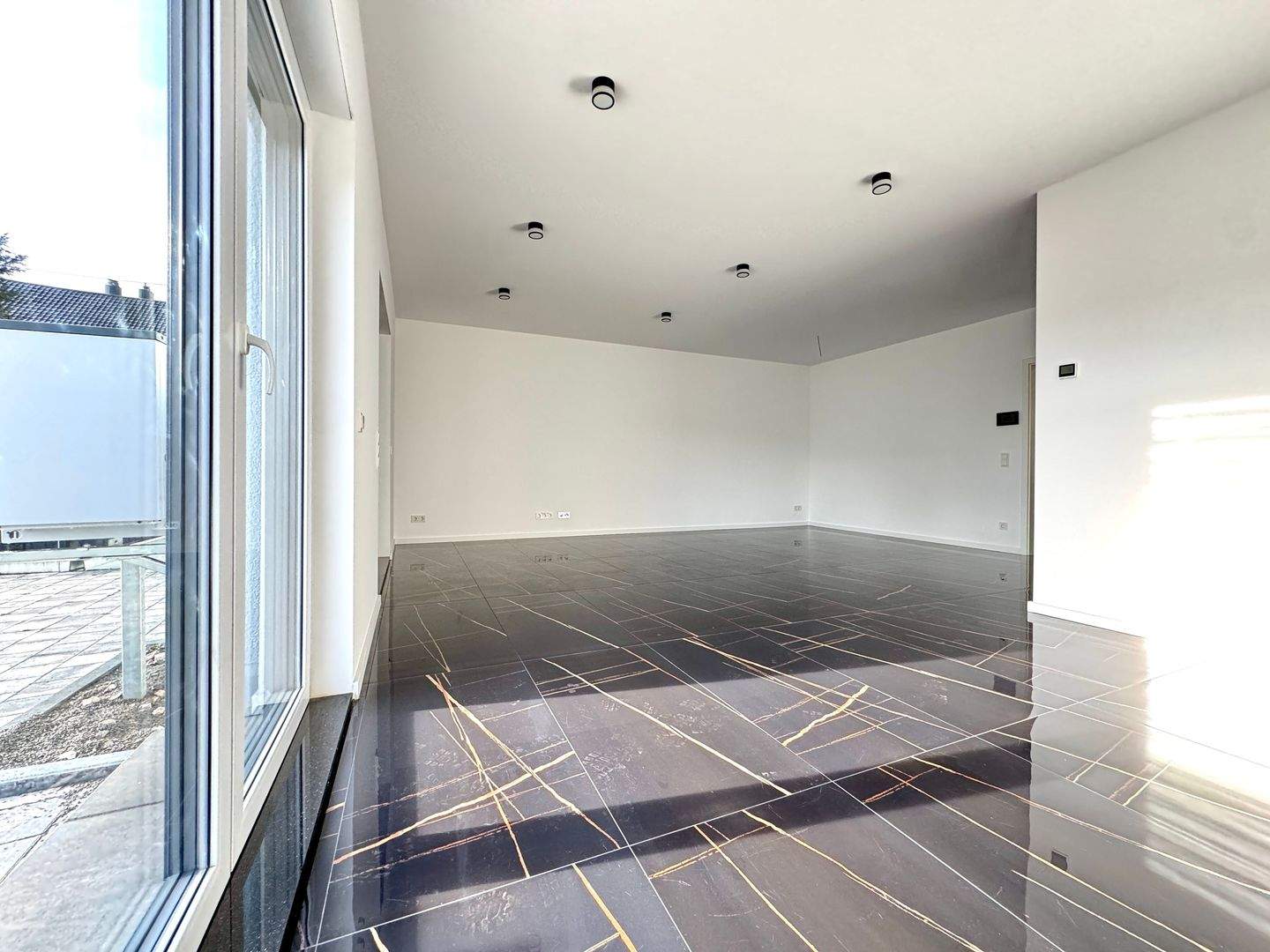 - Bodenbeläge: Hochwertige italienische Großformatfliesen im gesamten Haus