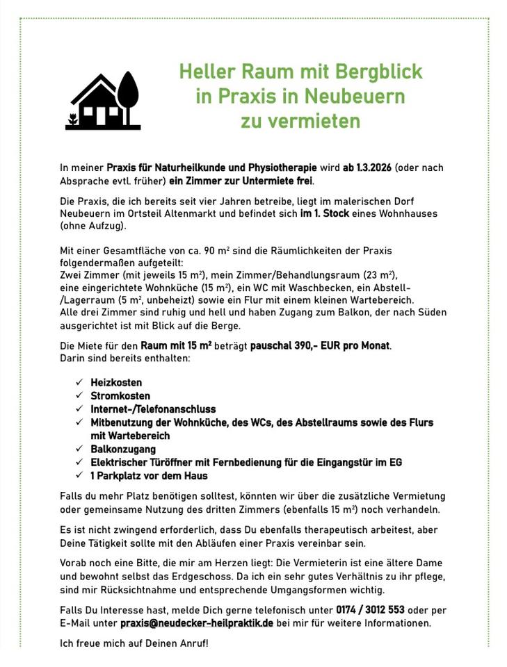 Sie befinden sich hier: Heller Raum mit Bergblick in Praxis in Neubeuern zu vermieten in Raubling - 3274998649-277-7579 | 1A-Immobilienmarkt.de