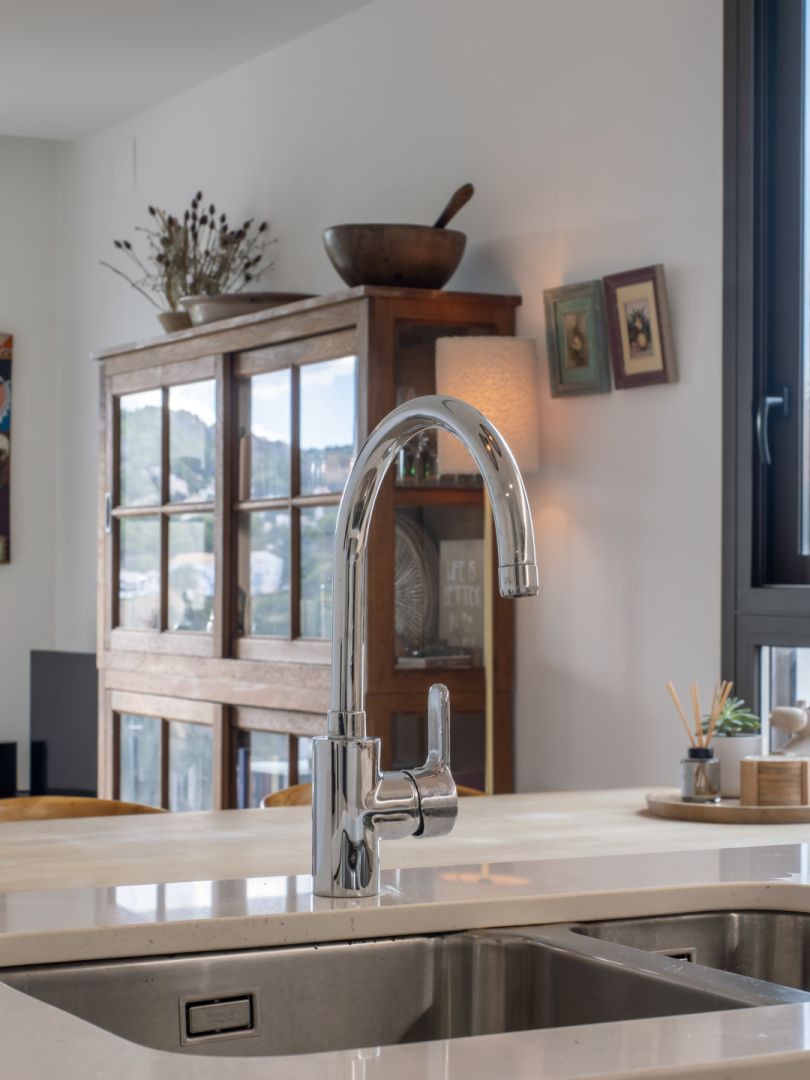Modernes Penthouse in Gehweite von El Arenal, Jávea. . Dieses wunderschöne Penthouse befindet sich im zweiten Stock eines kleinen Apartmentgebäudes, nur 600 Meter vom Strand Arenal entfernt. Dank seiner Lage neben einer Grünzone genießt das Apartment einen freien und unverbauten Blick über das Tal, den Montgó und die dahinter liegende Berglandschaft.. . Das Penthouse erstreckt sich über zwei Etagen. Im Erdgeschoss befinden sich eine Eingangshalle, ein geräumiges Wohn-Esszimmer und eine voll ausgestattete, moderne Küche mit Kühl-/Gefrierschrank, Geschirrspüler, Backofen und Mikrowelle. Durch große Schiebefenster gelangt man vom Wohnzimmer auf eine überdachte Terrasse. Außerdem gibt es auf dieser Etage ein Doppelzimmer und ein Badezimmer.. . Das Obergeschoss verfügt über zwei weitere Doppelschlafzimmer, ein Badezimmer und eine Dachterrasse, auf der Sie dank der Südwestausrichtung den ganzen Tag die Sonne genießen können.. . Die Wohnung ist mit Einbauschränken, einer kanalisierten Warm-/Kalt-Klimaanlage, Fußbodenheizung, elektrischen Rollläden, einer Wärmepumpe und einem eigenen Parkplatz mit einem geräumigen Abstellraum in der Tiefgarage ausgestattet.. . Die Anlage verfügt über einen Gemeinschaftspool mit einem gepflegten Garten, der nur mit acht anderen Wohnungen geteilt wird.. . Eine einzigartige Gelegenheit, ein modernes Penthouse in Laufnähe zu allen Annehmlichkeiten zu erwerben.. . Zögern Sie nicht länger und vereinbaren Sie jetzt einen Besichtigungstermin!