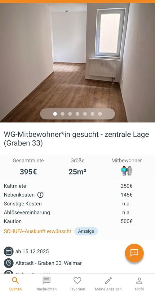 Sie befinden sich hier: WG zimmer zentral lage Weimar in Weimar - 3276178039-203-3763 | 1A-Immobilienmarkt.de