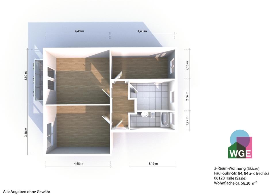 Zimmeranzahl :3 Gesamtgröße :ca. 58,20 m² Stand vom :03.02.2026