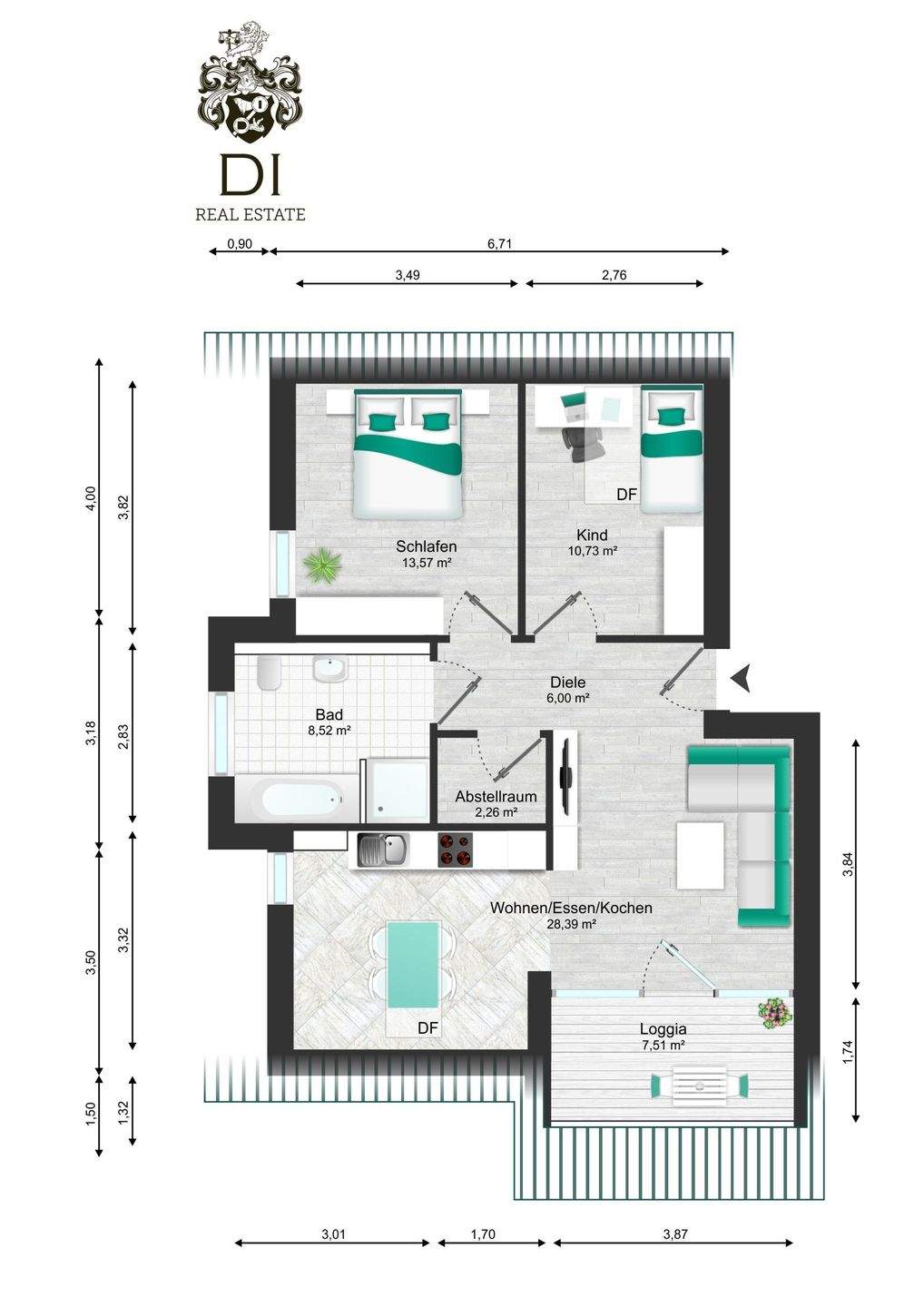Zimmeranzahl :3 Wohnfläche :ca. 65,00 m² Baujahr :2025 Frei ab :15.01.2026 Balkon :