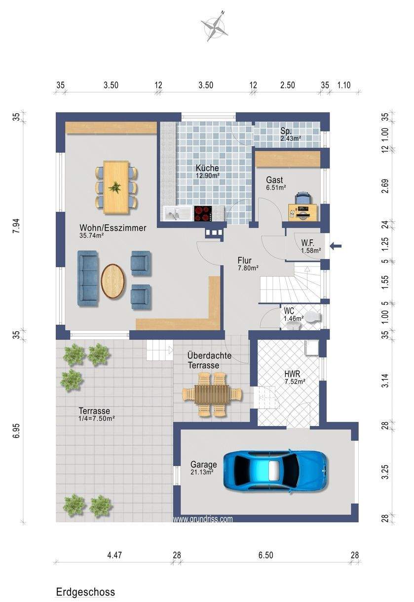 • Überdachter Terrassenbereich -