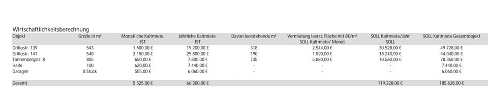 3 Mehrfamilienhäuser, 8 Garagen und Halle