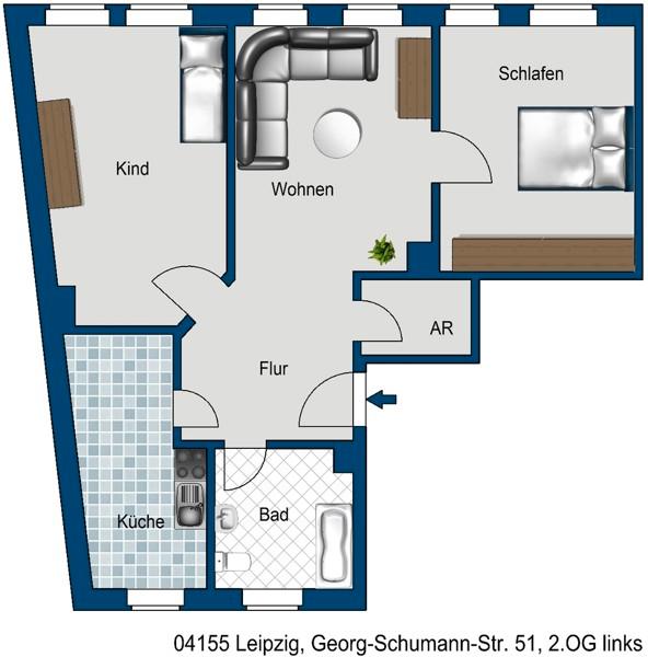 Sie befinden sich hier: Frisch sanierte 3 Raum Wohnung zu vermieten in Leipzig Mitte - 3230350998-203-30139 | 1A-Immobilienmarkt.de