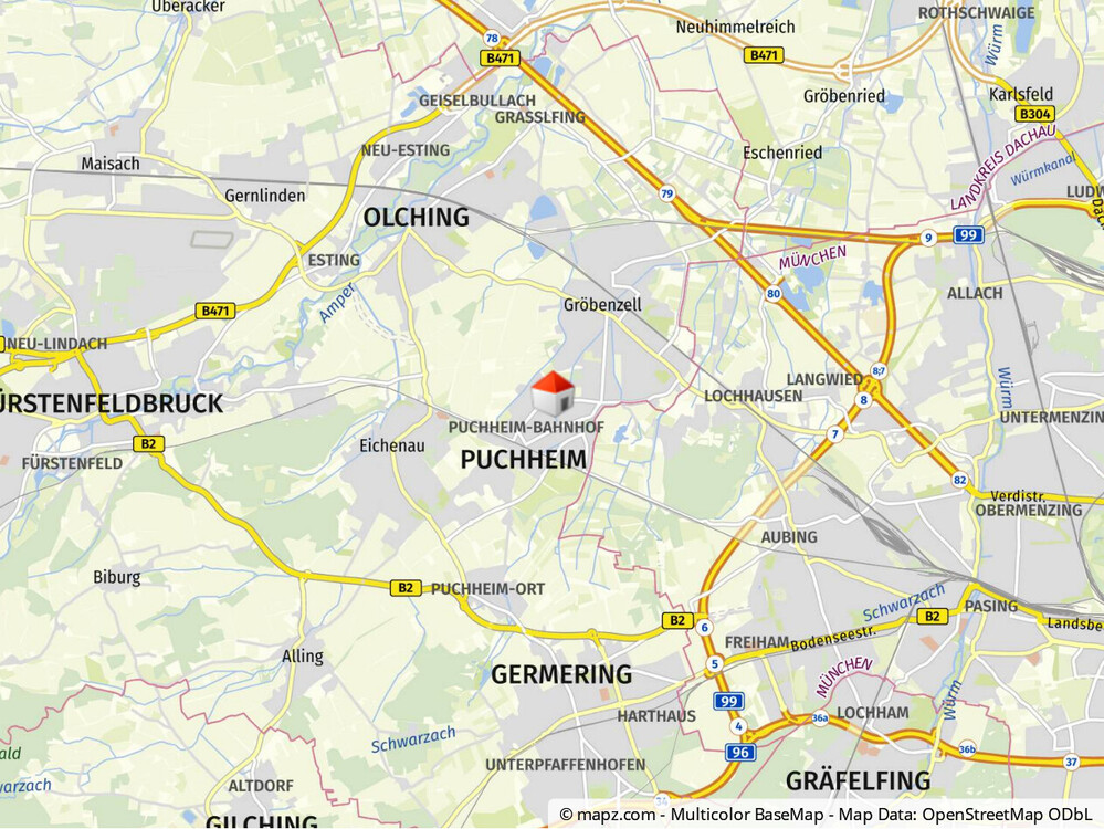 VERKEHRSANBINDUNGEN Dank der Lage am Autobahnkreuz A96/A99 gelangen Sie schnell zu den beliebten Ausflugszielen im Fünfseenland und ebenso zügig ins Münchner Stadtzentrum. Puchheim ist an das Netz der S-Bahn München und damit an den Münchener ÖPNV angeschlossen. Es verkehrt die Linie S 4 von Geltendorf über München nach Ebersberg. Außerdem stärkt die S20 das öffentliche Verkehrsnetz während den Berufsverkehr. Vom Bahnhof fahren verschiedene Busse quer durch Puchheim, sodass Sie alle Ecken problemlos öffentlich erreichen können.