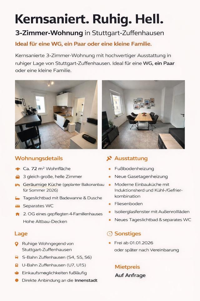 Etagenwohnung in Stuttgart, Zuffenhausen 70435